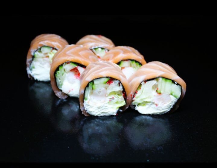 Нори, сыр, айсберг, огурец, креветка, массаго, лосось, шарики рисовые